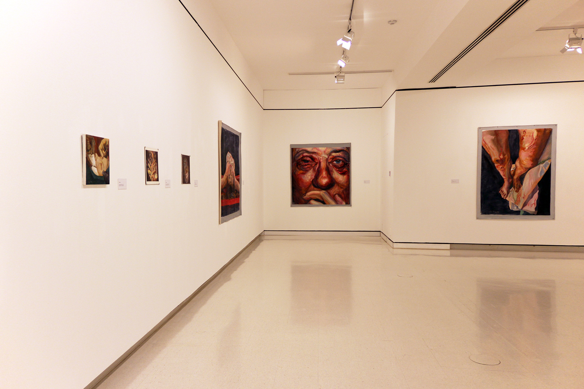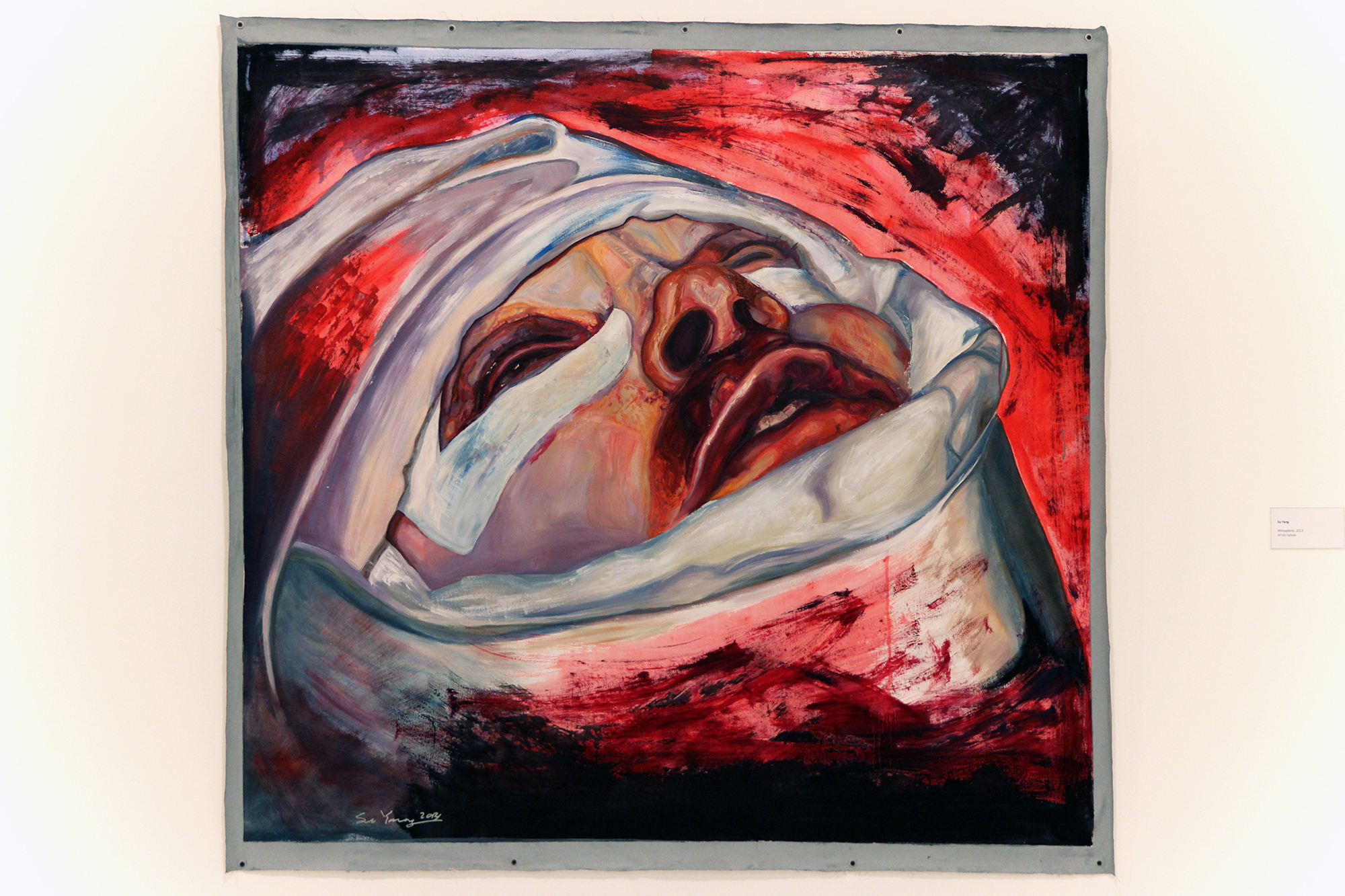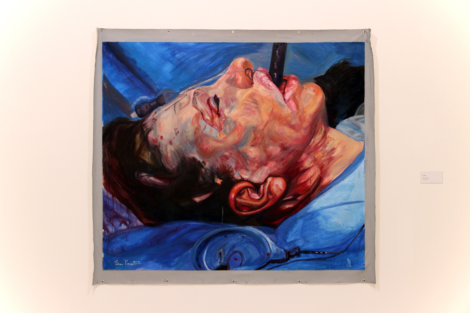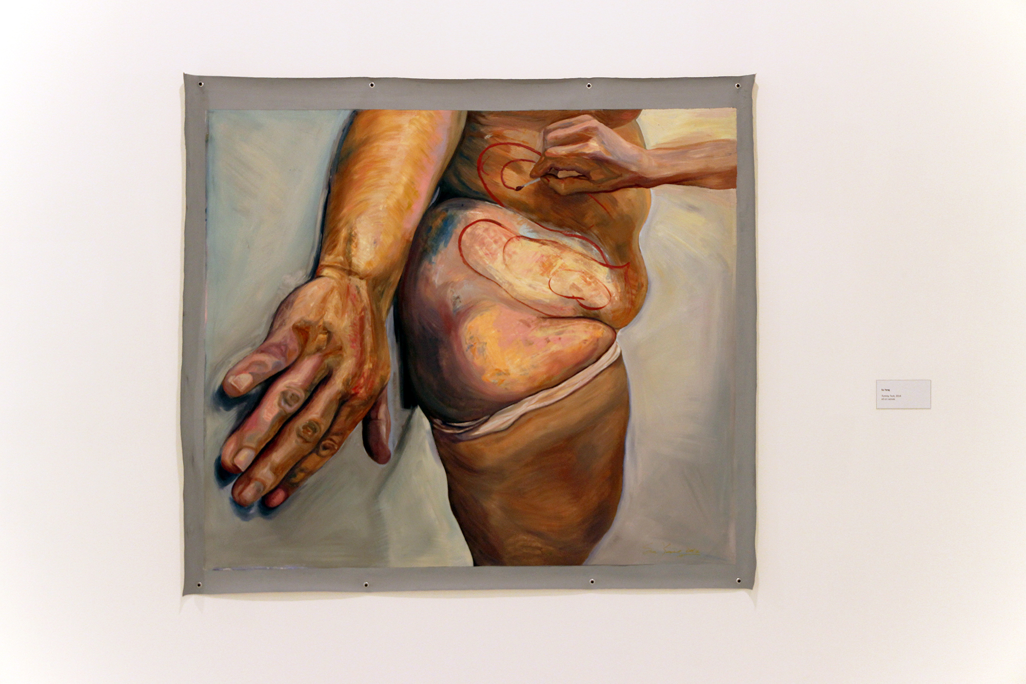 In my paintings, I use oil and egg tempera to portray women before, during, or after cosmetic plastic surgeries. These paintings show the desensitized nature of reconstructive surgery and the subsequent trauma and suffering of the body.